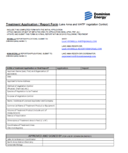 Requests should be submitted via email to the Dominion Energy Lake Anna Reservoir Coordinator (napsreservoir@dominionenergy.com) at least 30 calendar days prior to the intended treatment date.